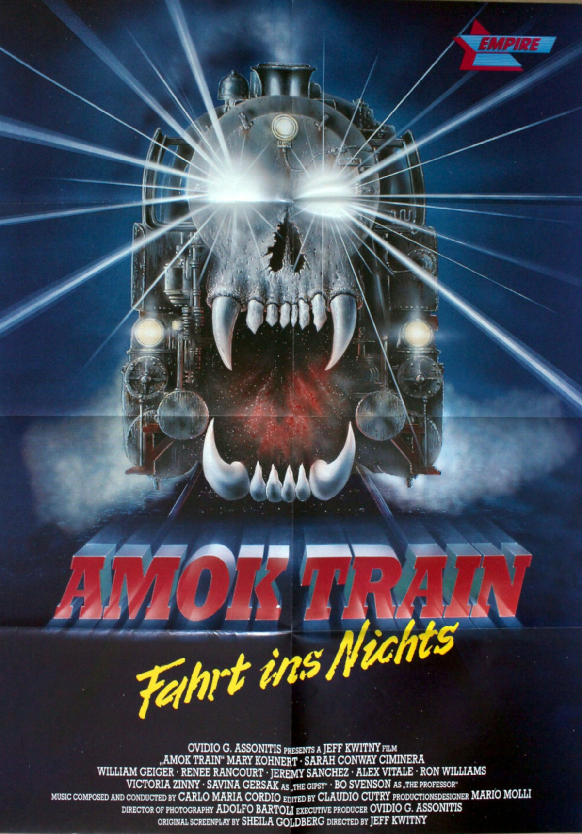 „AMOK TRAIN“ WURDE IN DEUTSCHLAND FÜR FSK18 AUFLAGEN UM CA. 0.5 MINUTEN GEKÜRZT. DIE GEKÜRZTE FSK18 FASSUNG WAR VON 1991 BIS 2016 INDIZIERT (LISTENSTRECIHUNG).